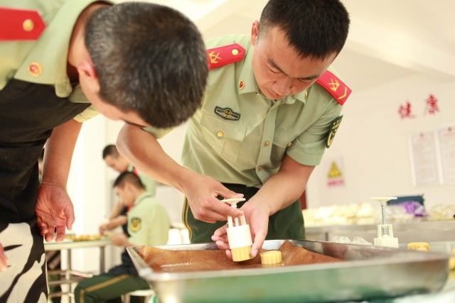 很多戰(zhàn)士被問(wèn)及家人的情況時(shí),都表示因?yàn)楣ぷ鞯奶厥庠颍坏貌焕?duì)他們。正因如此,湖南萬(wàn)利隆食品有限公司DIY講師團(tuán)隊(duì)受邀,為武警官兵講授手工制作現(xiàn)烤月餅工藝課程。